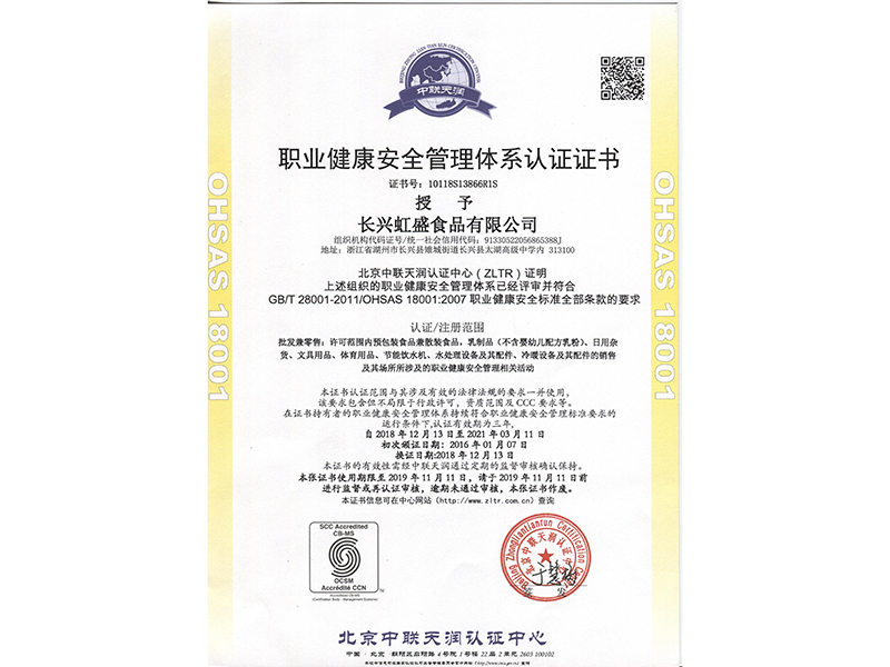 职业健康安全管理证书